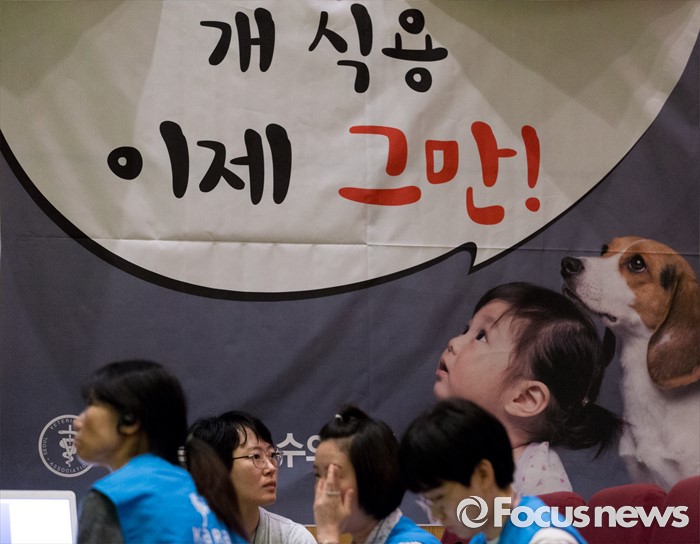 (서울=포커스뉴스) 5일 오전 서울 종로구 서울역사박물관에서 열린 개 식용 종식을 위한 국제컨퍼런스에서 개 식용 근절을 위한 포스터가 부착돼 있다.