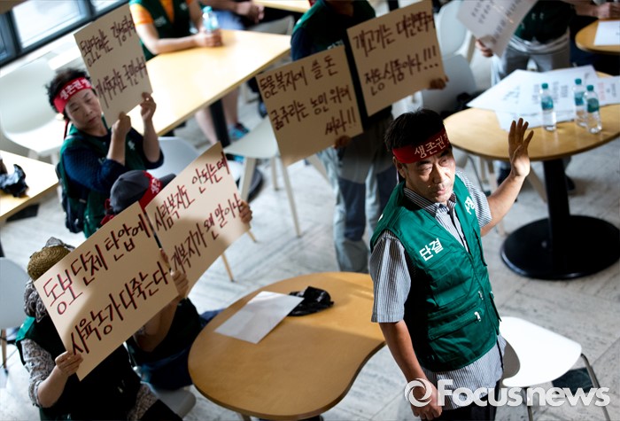 (서울=포커스뉴스) 5일 오전 서울 종로구 서울역사박물관에서 대한육견협회 회원들이 개 식용 종식을 위한 국제컨퍼런스를 반대하는 집회를 하고 있다.