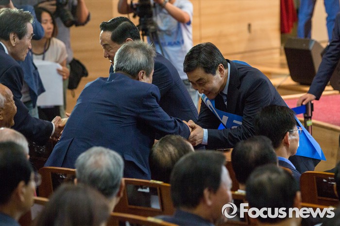 (서울=포커스뉴스) 더불어민주당 전당대회 당 대표에 출마한 이종걸 의원이 5일 오후 서울 여의도 국회의원회관에서 열린 '전당대회 당대표 예비경선(컷오프)'에 참석해 인사 하고 있다.