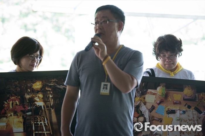 (안산=포커스뉴스) 세월호참사 이후 새로운 교육을 위한 사회적 합의에 따라 6일 오후 경기도 안산시 단원고등학교에서 교실 이전을 위한 준비 작업이 진행되고 있다. 단원고 희생자 유가족과 참석자들이 교실 이전 준비 작업 과정 중 하나인 '참회를 위한 기도' 시간을 갖고 있다.