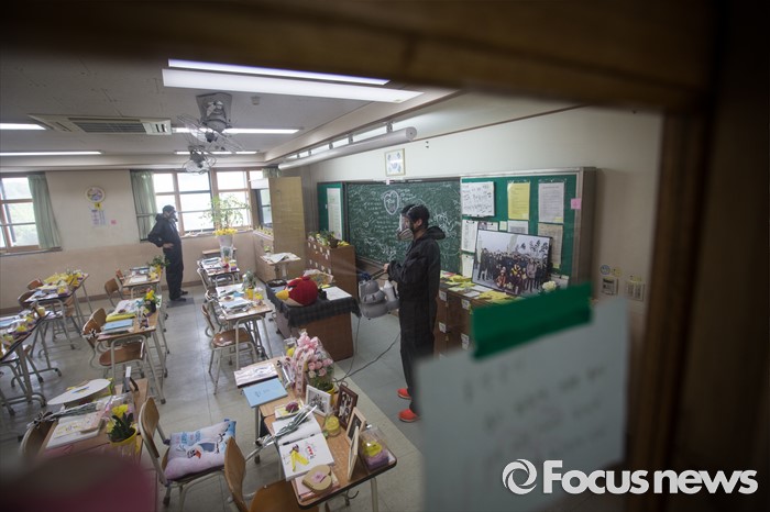 (안산=포커스뉴스) 세월호참사 이후 새로운 교육을 위한 사회적 합의에 따라 6일 오후 경기도 안산시 단원고등학교에서 교실 이전을 위한 준비 작업으로 물품 소독을 하고 있다.