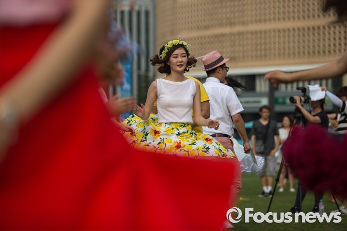 (서울=포커스뉴스) 6일 오후 서울 중구 시청 앞 광장에서 열린 '서울 스윙댄스 페스티벌'에서 청년문화예술단체 딴따라땐스홀 회원들이 음악에 맞춰 스윙댄스를 추고 있다.