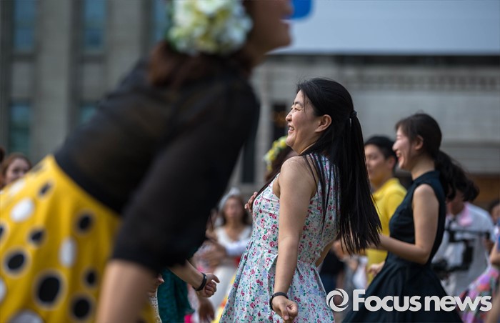 (서울=포커스뉴스) 6일 오후 서울 중구 시청 앞 광장에서 열린 '서울 스윙댄스 페스티벌'에서 청년문화예술단체 딴따라땐스홀 회원들이 음악에 맞춰 스윙댄스를 추고 있다.