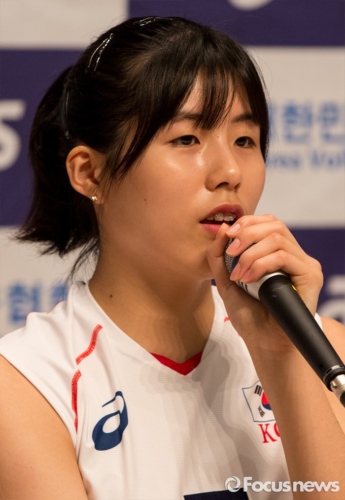 일본과의 경기는 현지시간으로 오전 9시30분에 열려 선수들이 컨디션 유지가 쉽지 않았다. 1세트까지 내주며 경기는 쉽지 않은 분위기였다. 하지만 한국은 막내 이재영의 알짜배기 활약에 힘입어 부담스러운 첫 경기를 승리로 장식할 수 있었다.(진천=포커스뉴스) 12일 오전 충북 진천 선수촌 대강당에서 열린 '대한민국 여자배구 국가대표선수단 기자회견'에 참석한 이재영 선수가 각오를 밝히고 있다. 이날 기자회견을 가진 여자배구 선수단은 리우올림픽을 대비해 23일 네덜란드로 전지훈련을 떠날 계획이다. 2016.07.12 양지웅 기자