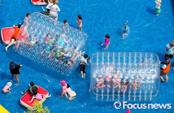 (서울=포커스뉴스) 절기상 입추인 7일 오후 서울 종로구 광화문 세종대로에 설치된 물놀이장에서 어린이들이 즐거운 시간을 보내고 있다.