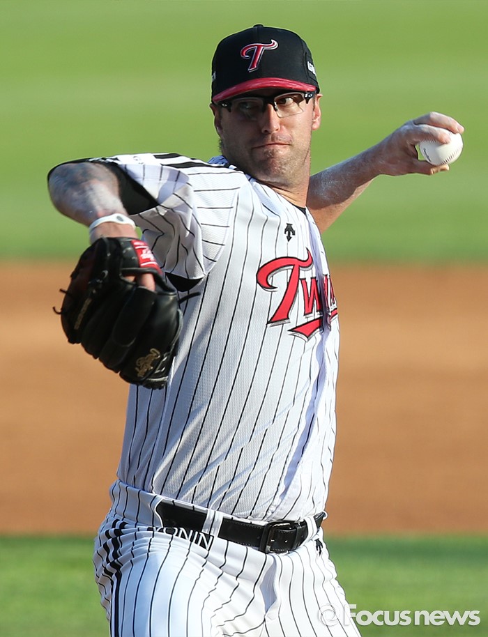 (서울=포커스뉴스) 5일 서울 잠실구장에서 열린 2016 프로야구 kt-LG 경기에서 1회초 LG 선발투수 허프가 투구하고 있다.