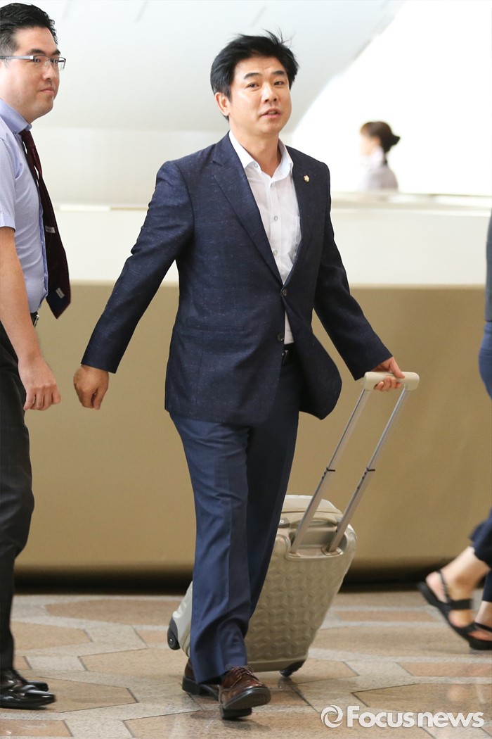 (서울=포커스뉴스) 김병욱 더불어민주당 의원이 사드 배치와 관련한 중국 방문 일정을 위해 8일 오전 서울 강서구 김포공항을 통해 출국하고 있다. 김 의원을 비롯해 김병욱·박정·소병훈·손혜원·신동근 의원 등 초선의원 6명은 8일부터 2박 3일간 중국에 머문 뒤 10일 귀국한다.