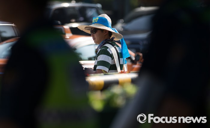 (서울=포커스뉴스) 8일 오전 서울 용산구 국방부 앞에서 사드배치철회 성주투쟁위원회 소속 성주군민이 사드 성주배치 철회를 촉구하는 1인 시위를 하고 있다.