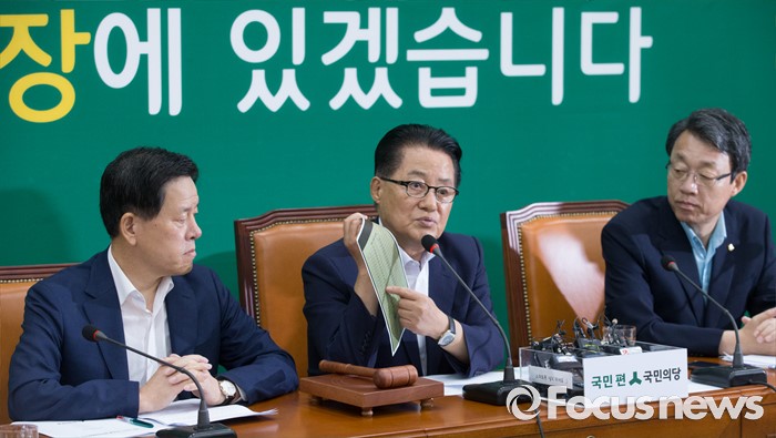 (서울=포커스뉴스) 8일 오전 서울 여의도 국회에서 열린 국민의당 비상대책위원회의에 참석한 박지원 비대위원장이 우병우 청와대 민정수석과 홍만표 변호사의 공동 변론 변호사 수임료 지급내역 관련 문서를 들고 발언하고 있다.