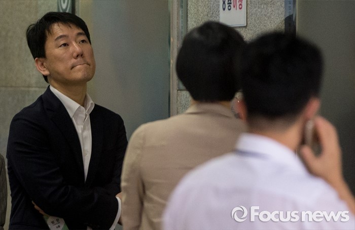 (서울=포커스뉴스) 사기·횡령·배임 등의 혐의로 피소된 이장석(맨 왼쪽) 넥센 히어로즈 대표가 8일 오전 서울중앙지검으로 소환조사를 받기 위해 출석하고 있다.