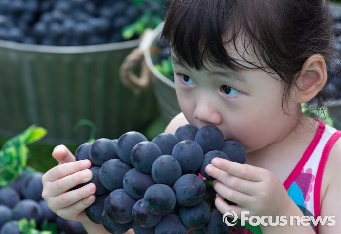 (서울=포커스뉴스) 8일 오전 서울 광화문광장에서 열린 '2016 포도데이' 행사에 참석한 한 어린아이가 포도를 먹고 있다.