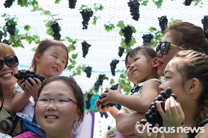 (서울=포커스뉴스) 8일 오전 서울 광화문광장에서 열린 '2016 포도데이' 행사에 참석한 시민들이 포도를 들고 포즈를 취하고 있다.