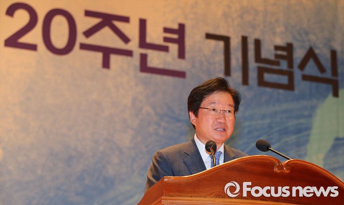 (세종=포커스뉴스) 8일 오전 세종시 정부세종청사 대강당에서 열린 해양수산 통합행정 20주년 기념식에서 김영석 해수부장관이 인사말을 하고 있다.