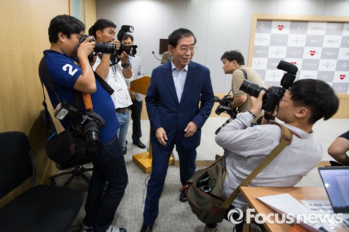 (서울=포커스뉴스) 박원순 서울시장이 8일 오후 서울 중구 서울시청 브리핑룸에서 열린 청년수당과 관련한 박근혜 대통령과 면담을 요청하는 기자회견을 마친 뒤 나서고 있다.