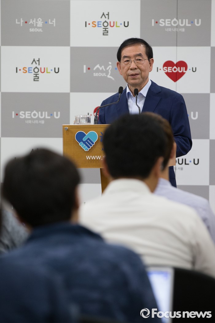 (서울=포커스뉴스) 박원순 서울시장이 8일 오후 서울 중구 서울시청 브리핑룸에서 열린 청년수당과 관련한 박근혜 대통령과 면담을 요청하는 기자회견에서 취재진의 질문에 답하고 있다.