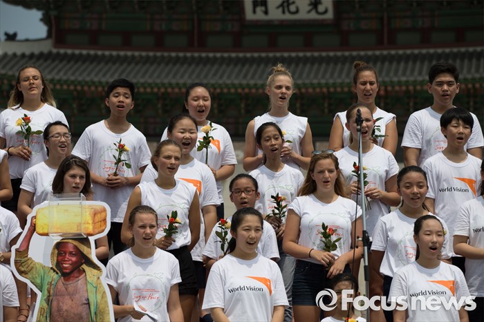 (서울=포커스뉴스) 8일 오전 서울 종로구 광화문광장에서 열린 '월드비전 2016세계어린이합창제' 런치콘서트에서 헝가리, 필리핀 어린이 합창단과 한국 월드비전 합창단이 노래를 부르고 있다. 올해로 6회를 맞은 '월드비전 2016 세계어린이합창제'는 'Song of Peace-평화의 노래'라는 주제로 8월 6일부터 11일까지 예술의 전당에서 열린다.