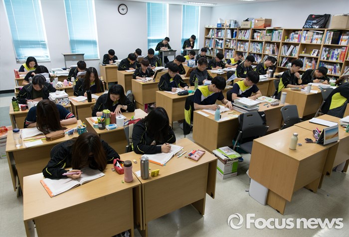 (안성=포커스뉴스) 2017학년도 대학수학능력시험을 101일 앞둔 8일 오후 경기도 안성종로기숙학원에서 재수생들이 공부를 하고 있다.