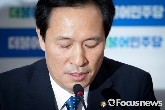 (서울=포커스뉴스) 9일 오전 서울 여의도 국회에서 열린 더불어민주당 원내대책회의에 참석한 우상호 원내대표가 모두발언을 하고 있다.
