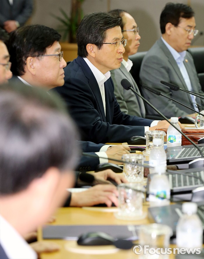 (세종=포커스뉴스) 황교안(오른쪽 세 번째) 국무총리가 9일 오전 세종시 정부세종청사 국무회의장에서 서울-세종 영상회의로 열린 국무회의를 주재하고 있다.