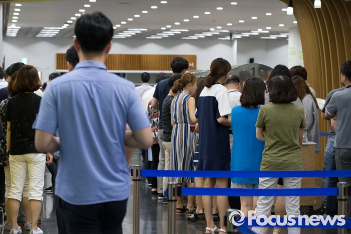 (서울=포커스뉴스) 수도권 대부분 지역에 엿새째 폭염경보가 내려진 9일 오전 서울 중구 한 구내식당이 직원들로 붐비고 있다.