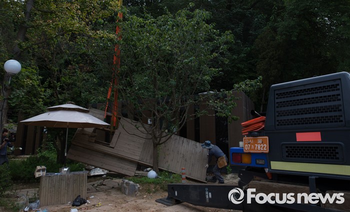 | △ 중장비 동원 봉주르 카페 내 위반 건축물 행정대집행 |