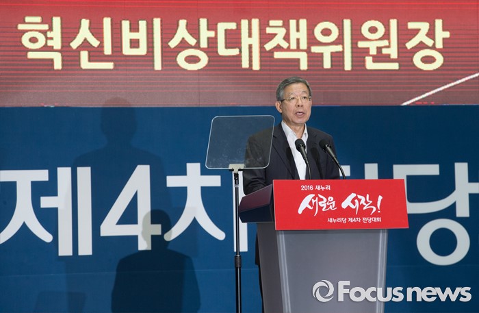 (서울=포커스뉴스) 9일 오후 서울 송파구 잠실실내체육관에서 열린 새누리당 4차 전당대회에 참석한 김희옥 혁신비대위원장이 인사말을 하고 있다.