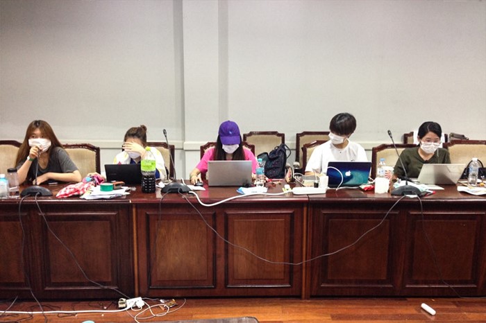 (서울=포커스뉴스) 9일 오전 서울 마포구 이화여대에서 최경희 총장 사퇴를 요구하며 농성을 벌이고 있는 본관 내부 모습이 공개됐다. 학생들이 업무를 보고 있다. <사진제공=이화여대언론팀>