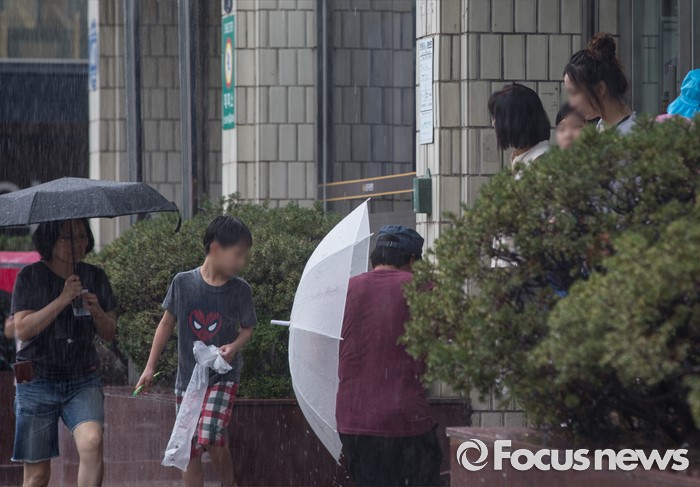 (서울=포커스뉴스) 9일 오후 서울 동작구 이수역 인근에 시민들이 비를 피해 발걸음을 재촉하고 있다.