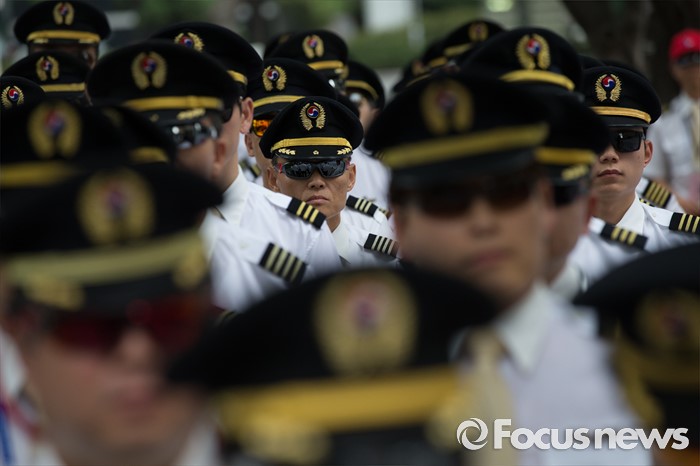 (서울=포커스뉴스) 9일 오후 서울 종로구 서울지방국세청 앞에서 열린 대한항공 경영정상화를 위한 세무조사 촉구대회에서 대한항공 조종사 노동조합 조합원들이 사회자의 발언을 듣고 있다.