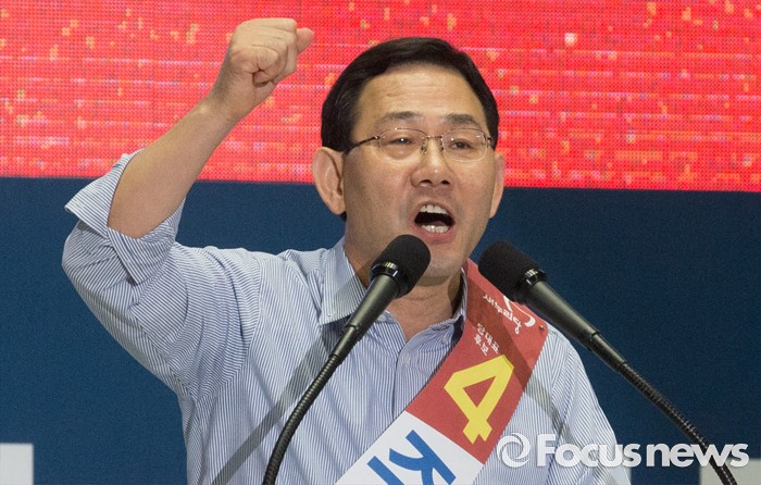(서울=포커스뉴스) 9일 오후 서울 송파구 잠실실내체육관에서 열린 새누리당 4차 전당대회에 참석한 주호영 당대표 후보가 정견발표를 하고 있다.