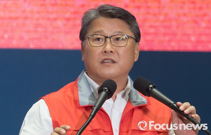 (서울=포커스뉴스) 9일 오후 서울 송파구 잠실실내체육관에서 열린 새누리당 4차 전당대회에 참석한 조원진 최고위원 후보가 정견발표를 하고 있다.