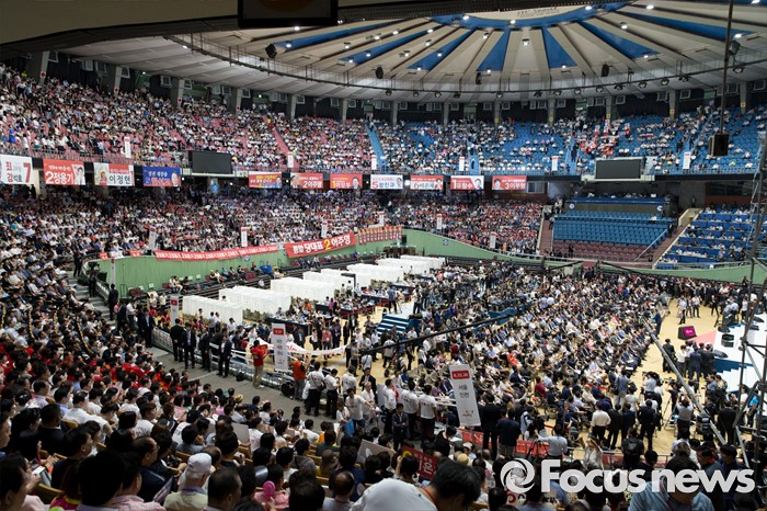 새누리당의 새로운 지도부가 뽑히는 전당대회. 과거와 달리 인지도가 떨어지는 인사들이 나선 탓에 관심도가 떨어졌다는 평이 나왔지만 이날 전당대회 현장은 이 같은 평가를 무색케 했다.