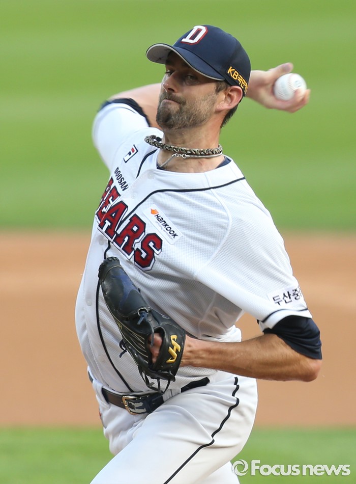 (서울=포커스뉴스) 9일 서울 잠실구장에서 열린 2016 프로야구 KIA-두산 경기에서 1회초 두산 선발투수 니퍼트가 투구하고 있다.