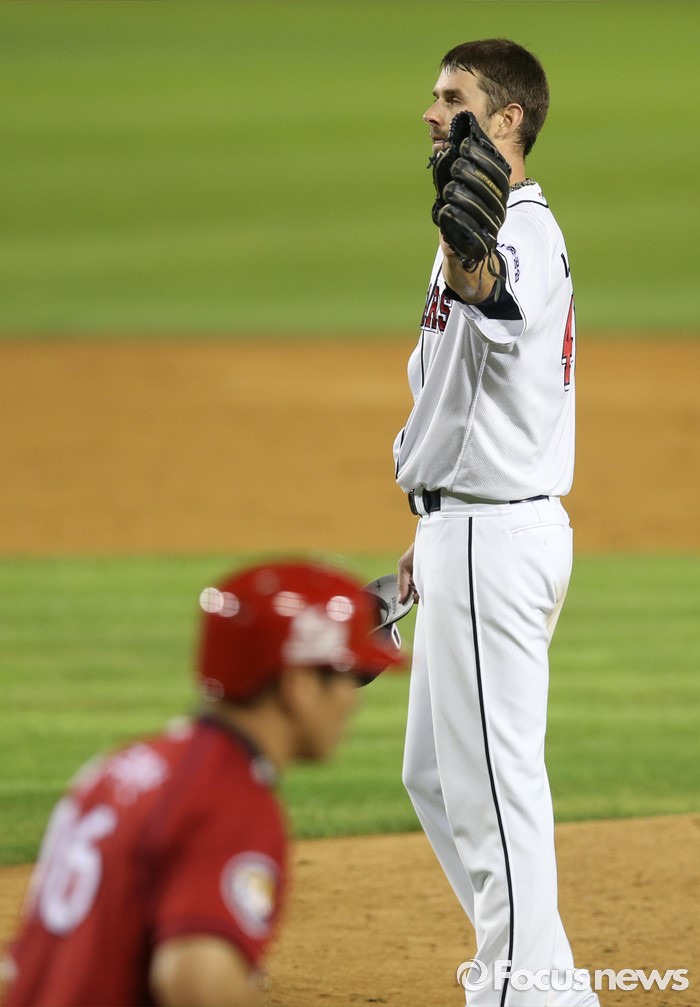 | △ 김주찬을 몸에 맞는 볼로 내보내는 니퍼트 |