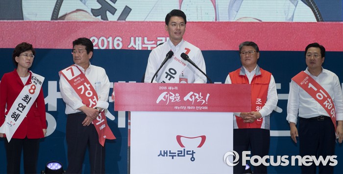 (서울=포커스뉴스) 9일 오후 서울 송파구 잠실실내체육관에서 열린 새누리당 4차 전당대회에서 유창수 신임 최고위원이 소감을 전하고 있다.