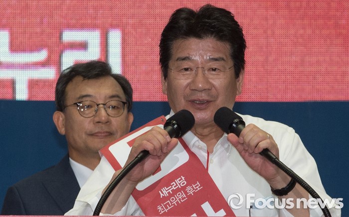 (서울=포커스뉴스) 9일 오후 서울 송파구 잠실실내체육관에서 열린 새누리당 4차 전당대회에서 강석호 신임 최고위원이 소감을 전하고 있다.