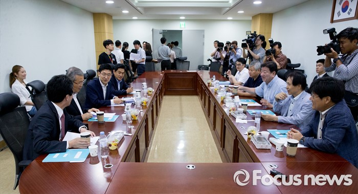 (서울=포커스뉴스) 10일 오전 서울 여의도 국회 의원회관에서 열린 '어젠다(Agenda) 2050' 회의에 참석한 의원들이 논의하고 있다.