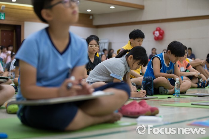 (서울=포커스뉴스) 10일 오전 서울 성동구 성동구청 대강당에서 열린 '성동 어린이 독서 골든벨'에서 초등학생들이 문제를 풀고 있다.