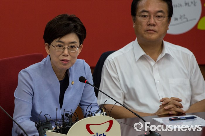 (서울=포커스뉴스) 최연혜(왼쪽) 새누리당 최고위원이 10일 오전 서울 여의도 새누리당사에서 열린 최고위원회의에 참석해 모두발언 하고 있다.