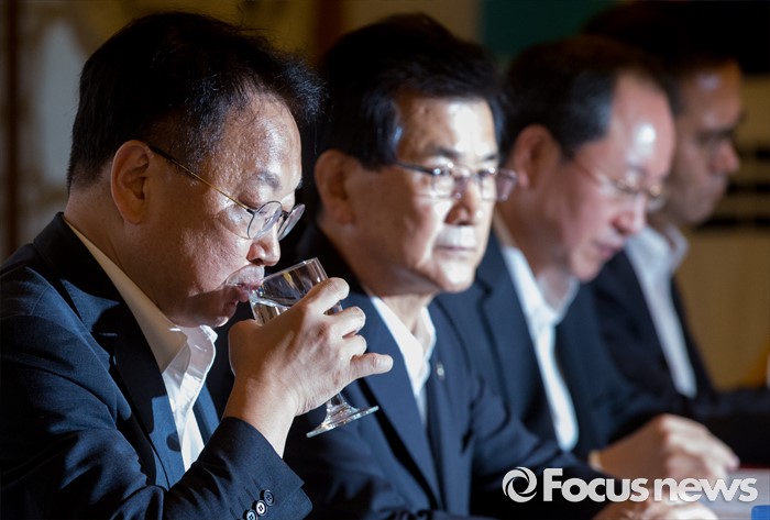 (서울=포커스뉴스) 10일 오후 서울 여의도 국회 사랑재에서 열린 지역경제 활성화를 위한 규제프리존 특별법 왜 필요한가? 간담회에 참석한 유일호 경제부총리 겸 기획재정부 장관이 물을 마시고 있다.