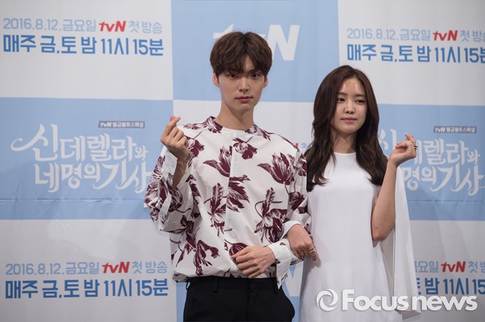 (서울=포커스뉴스) 10일 오후 서울 강남구 임피리얼 팰리스호텔에서 열린 tvN 금토드라마 '신데렐라와 네 명의 기사' 제작발표회에 참석한 배우 안재현(왼쪽)과 손나은이 포토타임을 갖고 있다.