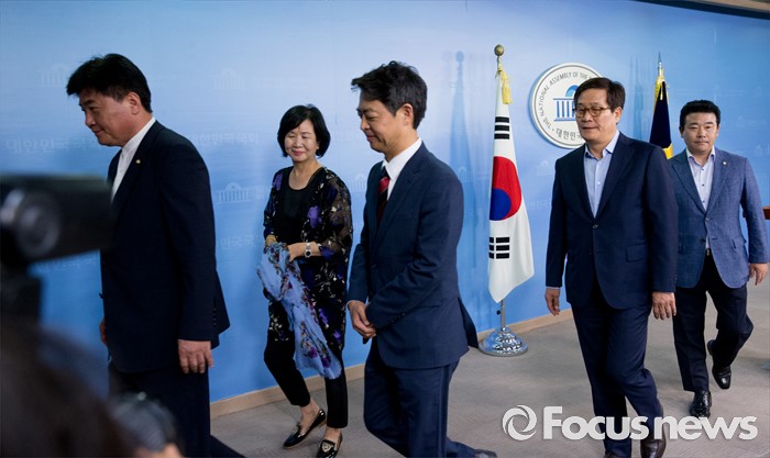 (서울=포커스뉴스) 방중을 마치고 귀국한 더불어민주당 초선 의원들이 10일 오후 서울 여의도 국회 정론관에서 기자회견을 마친 뒤 퇴장하고 있다. 왼쪽부터 소병훈, 손혜원, 김영호, 신동근, 박정 의원.
