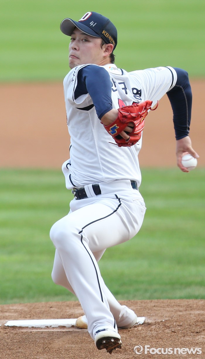 (서울=포커스뉴스) 10일 서울 잠실구장에서 열린 2016 프로야구 KIA-두산 경기에서 1회초 두산 선발투수 안규영이 투구하고 있다.