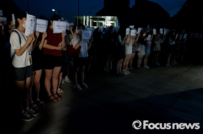 (서울=포커스뉴스) 10일 오후 서울 서대문구 이화여대에서 재학생 및 졸업생들이 최경희 총장의 사퇴를 요구하며 대규모 시위를 하고 있다.