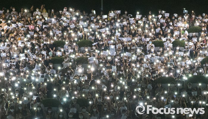 (서울=포커스뉴스) 10일 오후 서울 서대문구 이화여대에서 재학생 및 졸업생들이 최경희 총장의 사퇴를 요구하며 대규모 시위를 하고 있다.
