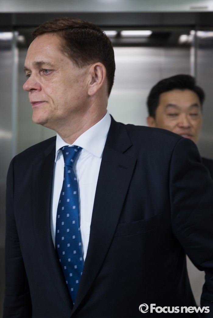 업계 관계자는 “승소 가능성이 낮은 행정소송으로 시간을 끄는 것은 근본적인 해결책이 아니다”라며 “재인증을 빨리 받아 딜러들의 이탈과 피해를 최소화하는 게 급선무”라고 말했다.(인천=포커스뉴스) 요하네스 타머(왼쪽) 아우디폭스바겐 사장과 정재균 부사장이 25일 오전 인천 서구 국립환경과학원에서 열린 차량 인증 조작 관련 환경부 청문회를 마친 후 청문회장을 나서고 있다. 2016.07.25 오장환 기자