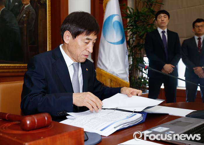 (서울=포커스뉴스) 11일 오전 서울 중구 한국은행에서 열린 제16차 금융통화위원회에 참석한 이주열 한국은행 총재가 회의 시작 전 자료를 검토하고 있다.
