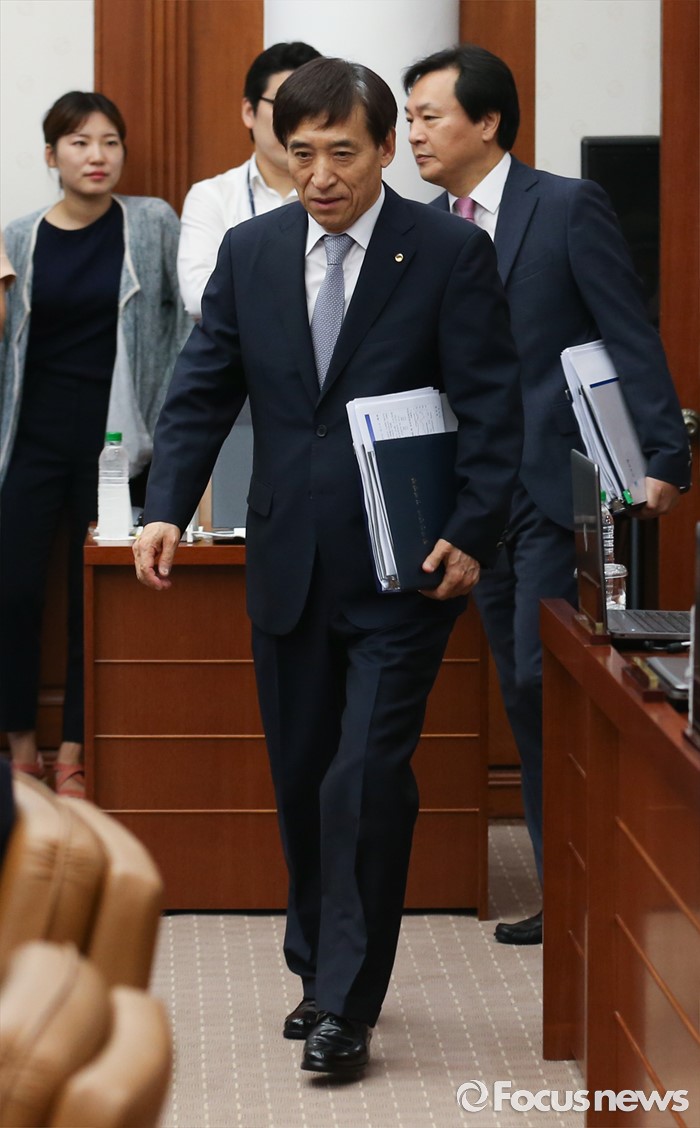 (서울=포커스뉴스) 이주열 한국은행 총재가 11일 오전 서울 중구 한국은행에서 열린 제16차 금융통화위원회에 참석하고 있다.