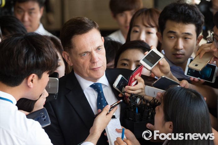 (서울=포커스뉴스) 폭스바겐 배출가스 조작 의혹을 받고 있는 요하네스 타머 아우디폭스바겐코리아 총괄사장이 11일 오전 서울 서초구 서울중앙지검으로 출석해 취재진의 질문을 받고 있다.