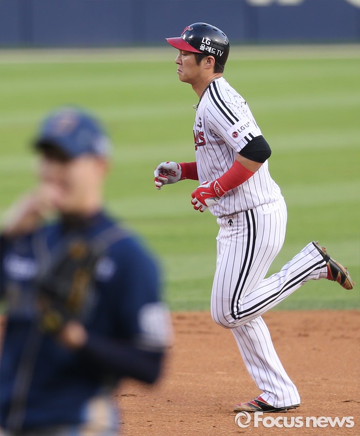 (서울=포커스뉴스) 11일 서울 잠실구장에서 열린 2016 프로야구 NC-LG 경기 2회말 1사후 LG 오지환이 우월 솔로 홈런을 치고 그라운드를 돌고 있다.